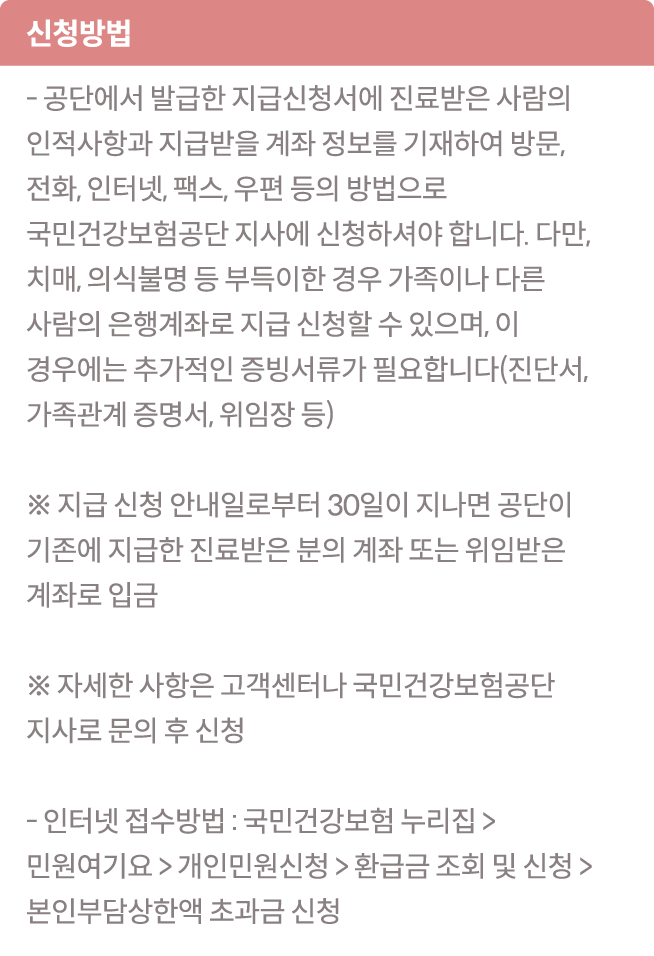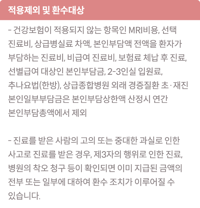 (단 비급여,선별급여,전액본인부담,임플란트,상급병실 입원료,추나요법 등은 제외됩니다.)